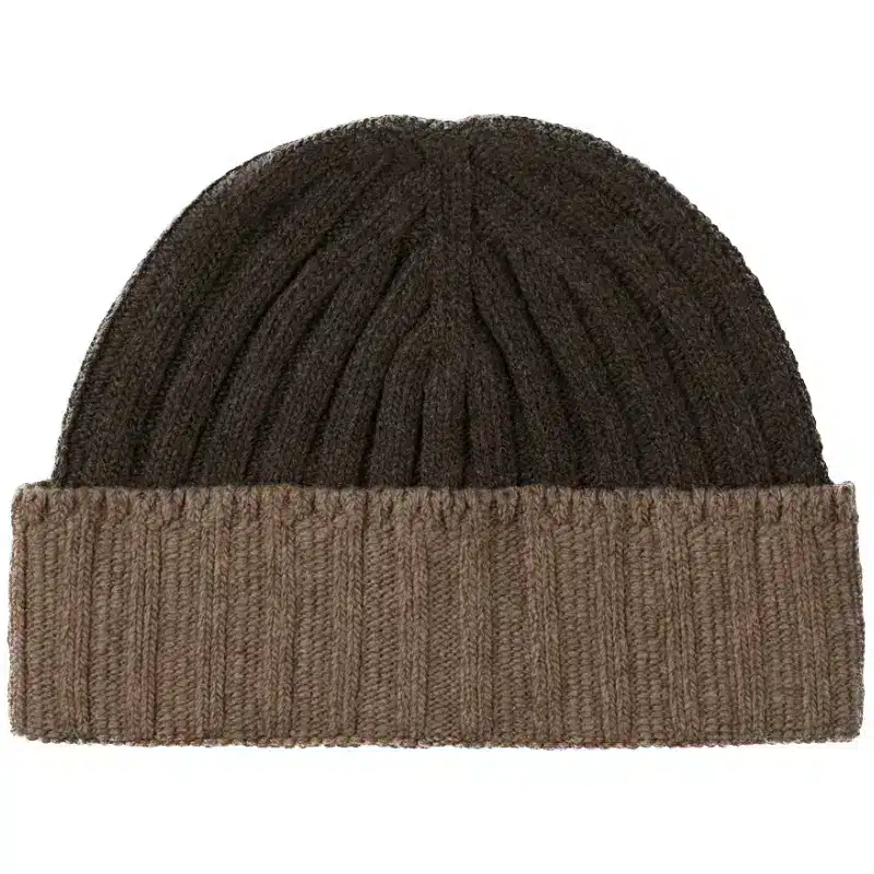 Den lækre hue - Beanie Lia, recycled cashmere, brown, repræsenterer et sublimt valg for dem, der ønsker at kombinere stil og bæredygtighed.