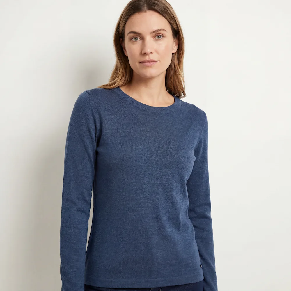Lækker merino uld striktrøje med Ohals til kvinder, Blå melange