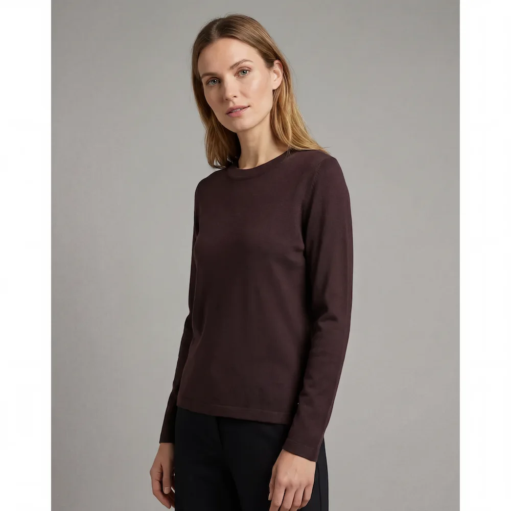 Lækker merino uld striktrøje med Ohals til kvinder. Bordeaux melange