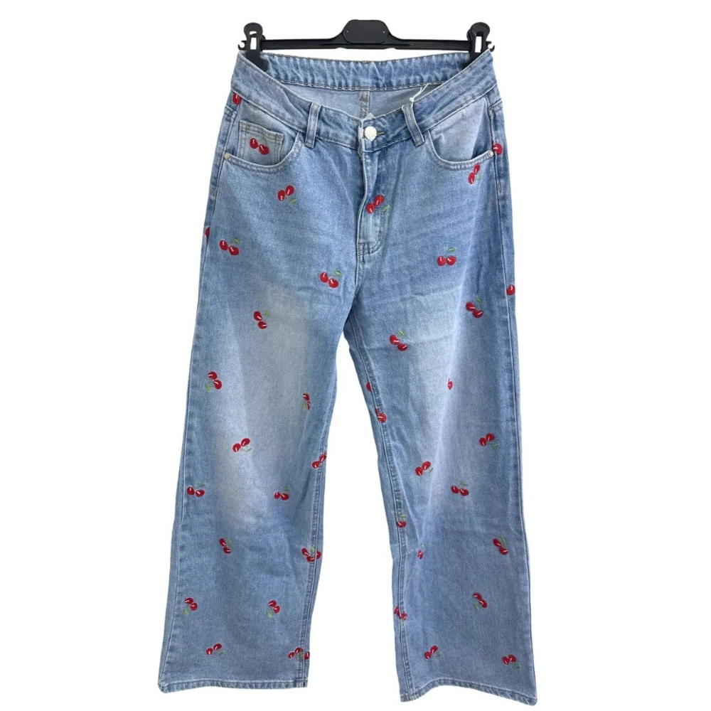 Lækre jeans med kirsebærbroderi, til kvinder