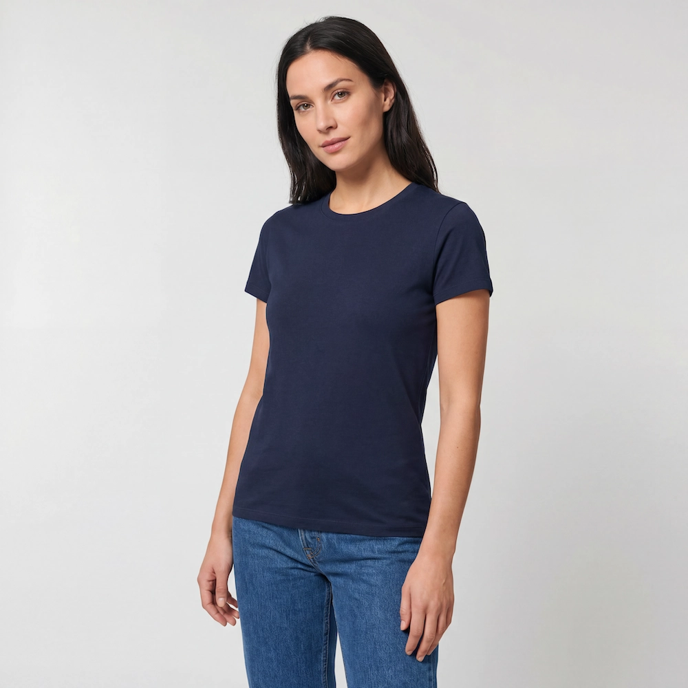 Økologiske basic slim fit t-shirts med rund hals i navy blå, til kvinder