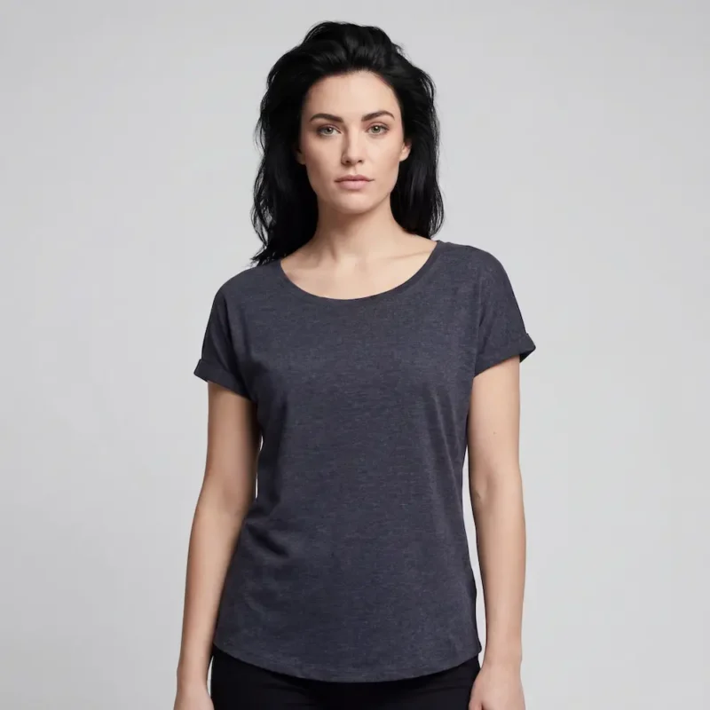 Økologiske basic loose fit t-shirts med rund hals i heather blue til kvinder kombinerer stil med bæredygtighed.