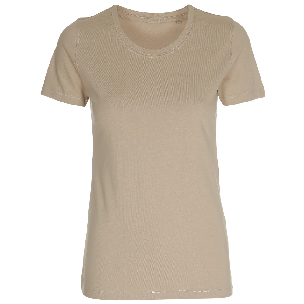 "Denne sandfarvede formsyet feminin t-shirt i kraftig kvalitet tilbyder den perfekte kombination af tidløs stil og daglig komfort, og det er let at forstå, hvorfor den er en favorit blandt vores kunder." - T-Shirten.dk