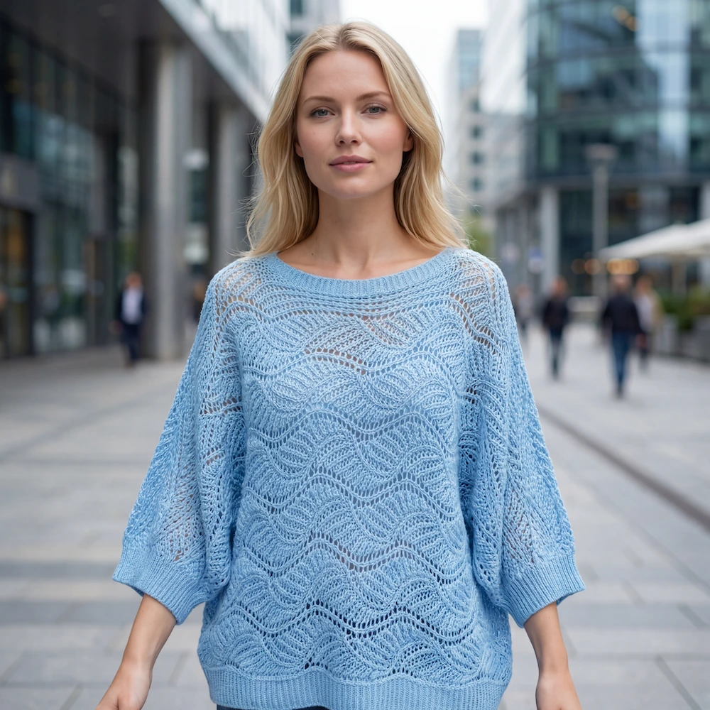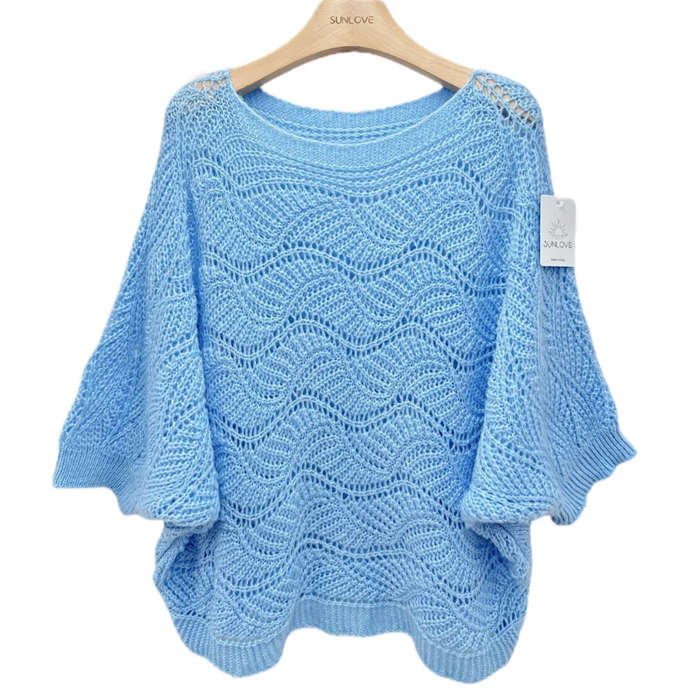 Vores whimsical uld og mohair sweater i den betagende lyseblå farve er det perfekte tilbehør til din forårsgarderobe.